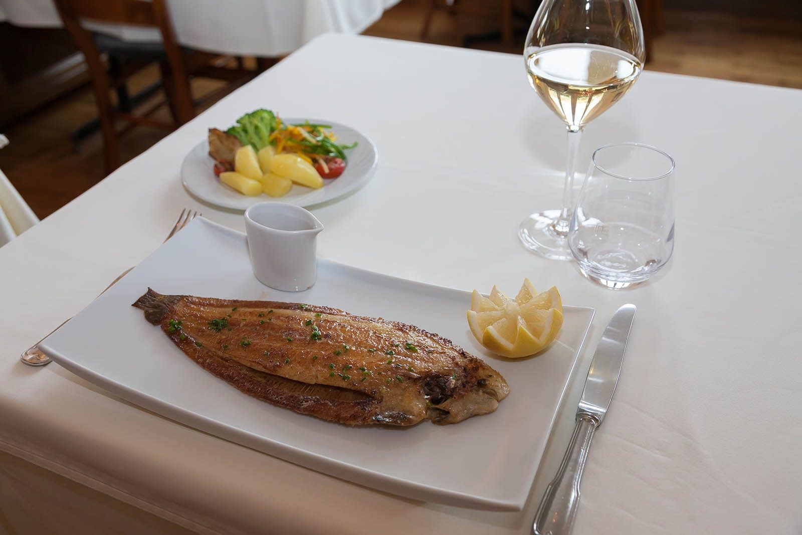 Nous travaillons principalement des poissons issus de pêche française, nos légumes et fruits de saison proviennent de la ferme de Raphael Gasser à Wolschwiller. Tous les produits composant notre carte sont préparés par nos soins.